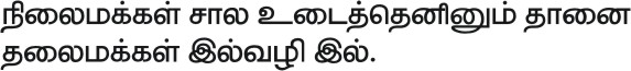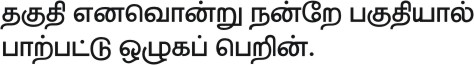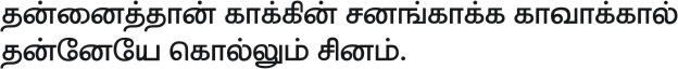 The Thirukkural is one of the most important works in the Tamil language. This is reflected in some of the other names by which the text is given by such as ‘Tamil marai’ (Tamil Vedas); ‘poyyamozhi’ (words that never fail); and ‘Deiva nool’ (divine text).