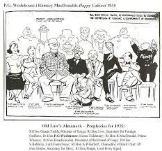 In 1935 the English government was not to strong and didn´t expect any real danger from Hitler and Mussolini, so the Almanack below by Old Law demonstrates a situation where the members of the government sit calm and enjoy themselves.