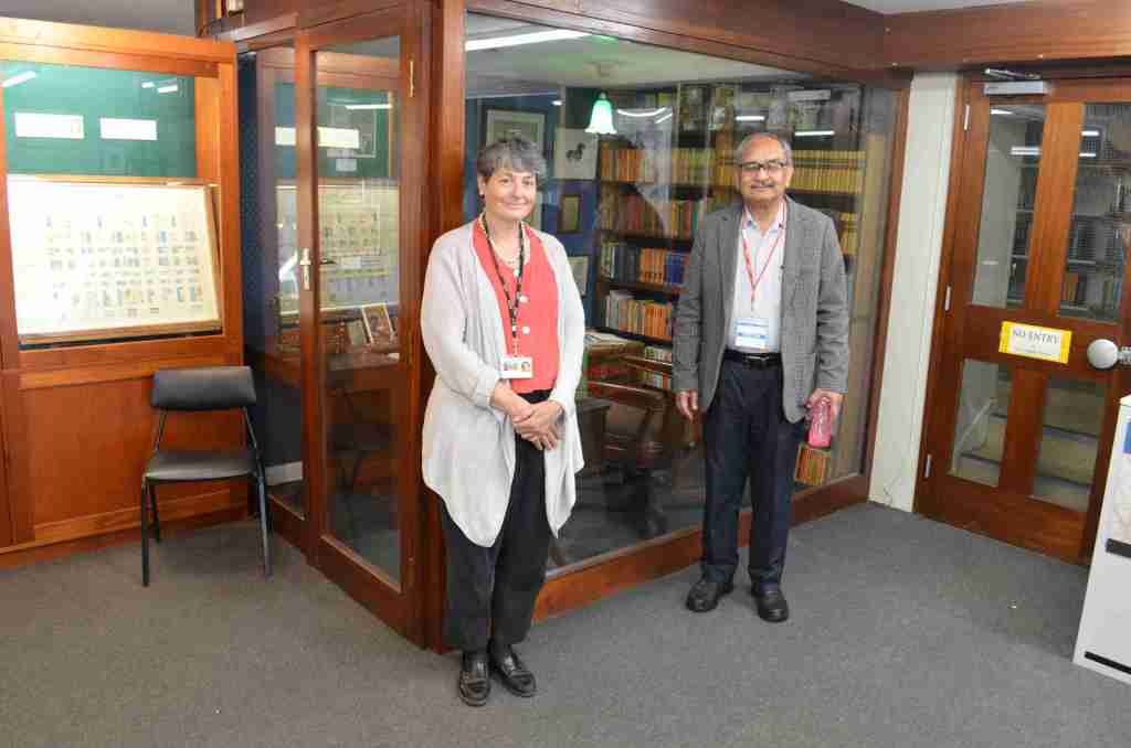 We passed by a well-stocked library of the college, named after Plum. Seeing the reconstructed study of his was a sheer delight. His working table, the chair that he used, two typewriters of his (one manual and another electric), his reading glasses, his pipes, the paperweights, a small figurine, and first editions of several of his books make the room come alive.