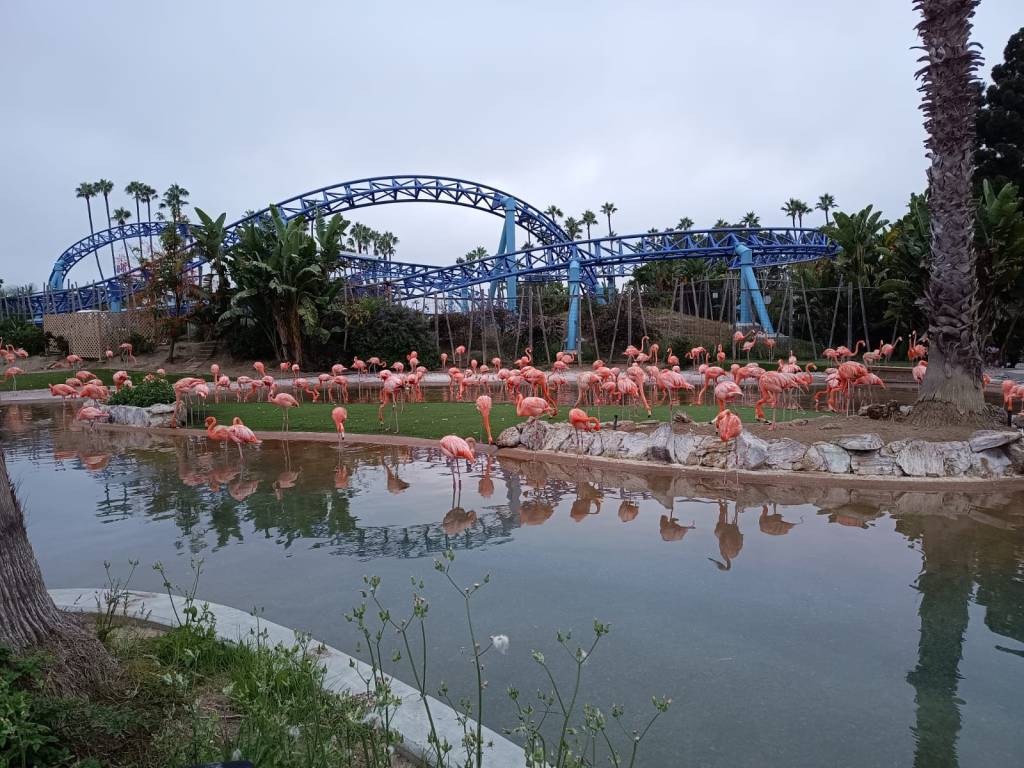 A visit to Sea World, a large aquarium-cum-amusement park in San Diego, enabled me to have a close look at a herd of pink flamingos, some sea lions, penguins, besides other sea creatures like orcas.