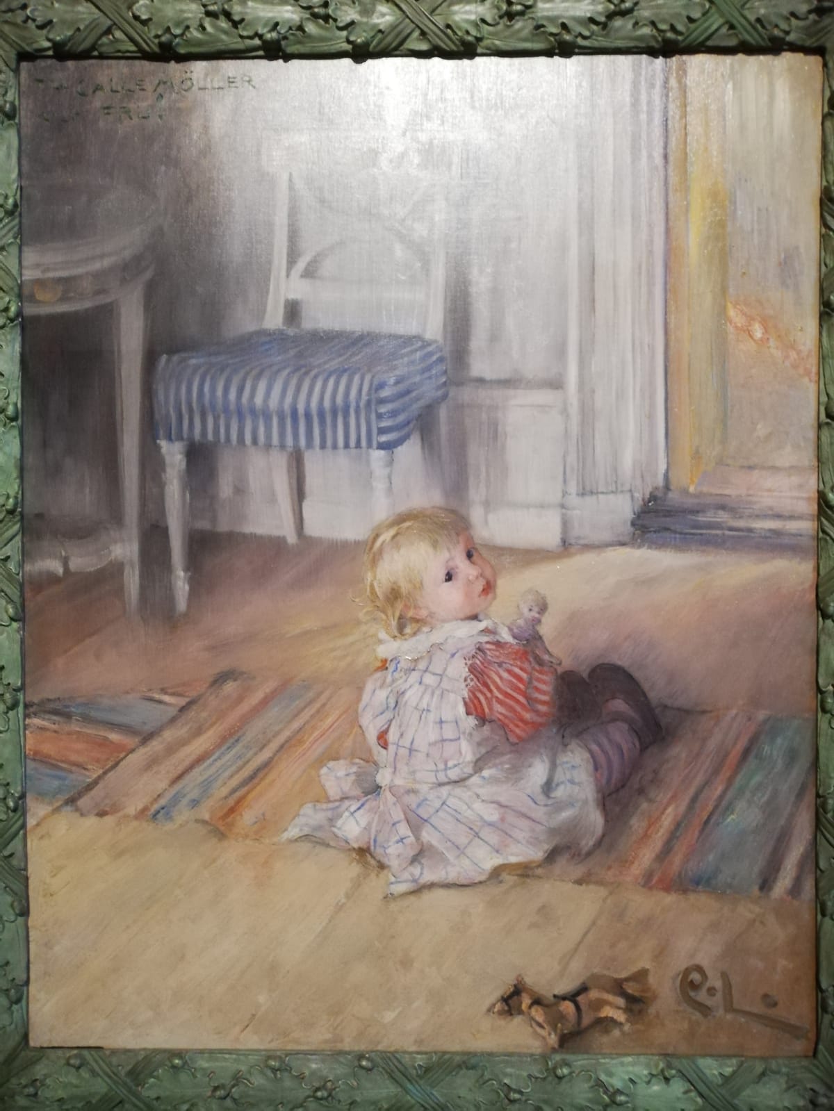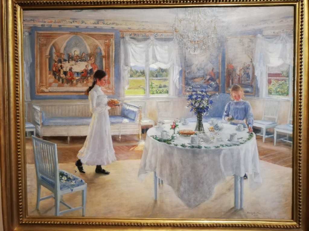 We also get to see paintings depicting a bridge, a brooding person deep in thought, some blacksmiths, an outdoor table being laid out in the lap of nature, two girls which look like twins, piano performance at a church, some portraits, baby with a puppy and an indoor table just being laid out for a delicious meal, gently nudging a visitor to rush to the museum café for some exquisite Swedish dishes.