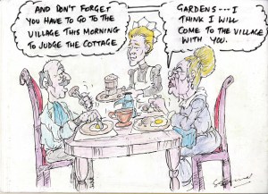 Lord Emsworth told McAllister he is off to the village to judge the cottage gardens and will see him later.