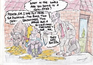 ‘No, sir. Thank you, sir. I thought if I didn’t ‘ave none, then it would be all right Ern ‘aving what I would ‘ave ‘ad if ‘ad ‘ave ‘ad.’