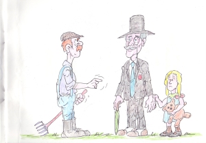 ‘It always seemed to Lord Emsworth that the annual Fête at Blandings Castle reached a peak of repulsiveness when tea was served in the big marquee.  It occurred to him that it would be a prudent move to take off his top hat before his little guests appreciated its humorous possibilities, but even as he raised his hand, a rock cake took it off for him.’