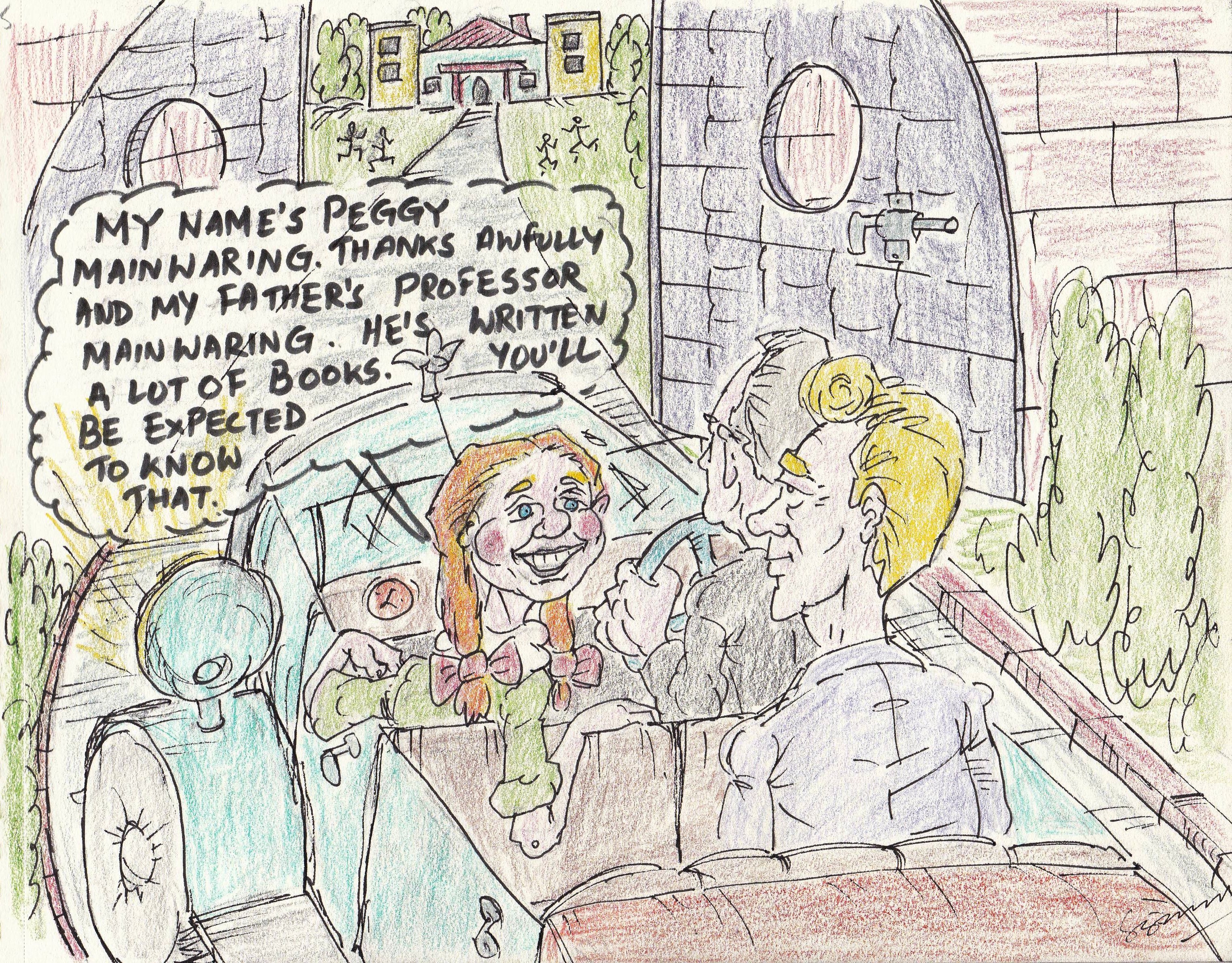 Mr Wooster wearied of Brighton after two days, and decided to return home, and we started back about 5 on a fine summer’s day. We had only gone about two miles when I noticed a red-haired young person of about 12, with a snub nose and an extremely large grin, seeking a lift. She seemed to me to have the air of one who had been absenting herself from school without leave.