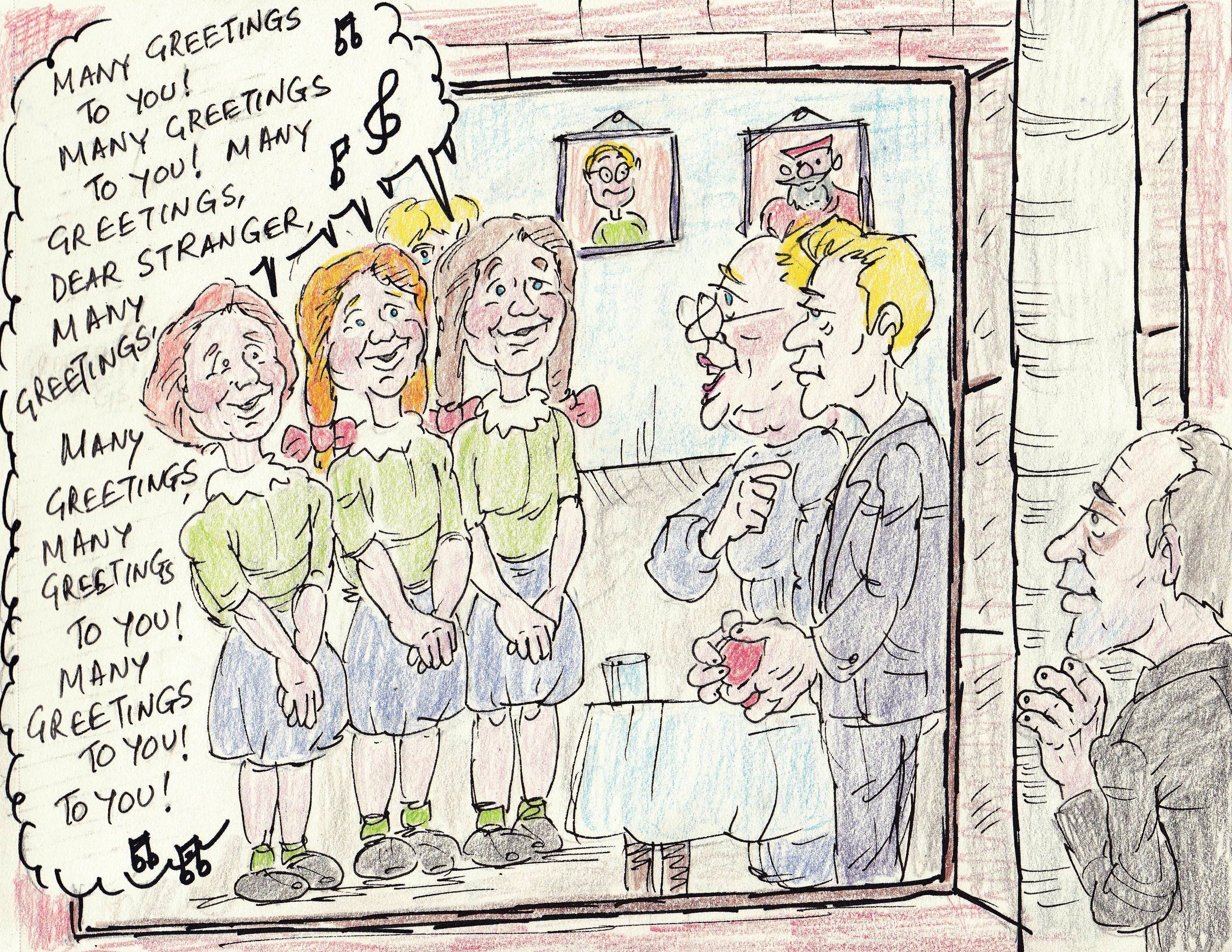 “We will now sing the school song,” said Miss Tomlinson, rising like an iceberg.