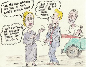 “Perhaps,” she said, “as it is getting late, and he has not very much time to spare, Mr. Wooster will just give you some little word of advice which may be helpful to you in after-life, and then we will sing the school song and disperse to our evening lessons.”